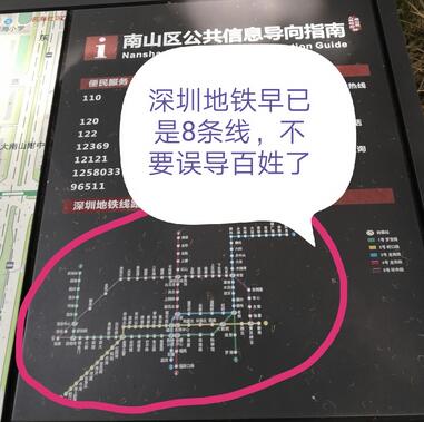 “南山區(qū),請更新過時的‘南山區(qū)公共信息指南’,不要誤導民眾了!”“地鐵早已是8條線路了,不要誤導百姓了”,網友還反映。