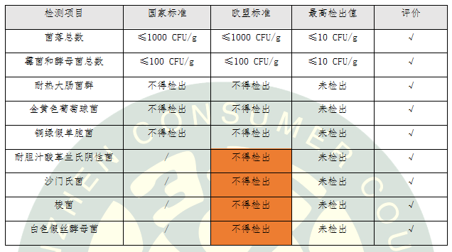 歐盟對化妝品中微生物要求更加嚴格,國標要求5項,歐標要求9項。檢測結果顯示:8款氣墊粉底微生物檢測結果不僅符合國家標準要求,而且符合歐盟法規(guī)要求。