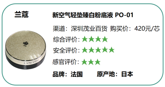 (一)本次比較試驗從消費者角度出發(fā),參考國標、歐盟(包含德國)、美國以及日本等國家和地區(qū)的標準對氣墊粉底進行測評,旨在為消費者篩選出達到國際一流標準的高品質產品。