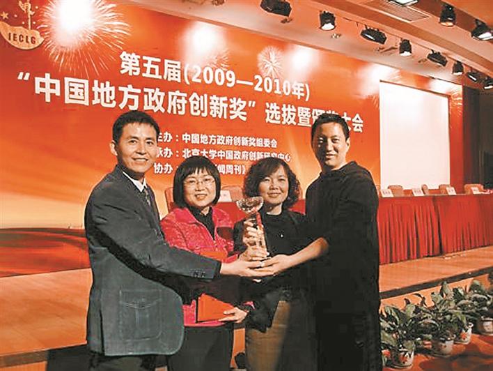 2010年1月17日,深圳社會組織改革榮獲第五屆“中國地方政府創(chuàng)新獎(jiǎng)”,馬宏(左二)等領(lǐng)取獎(jiǎng)杯。