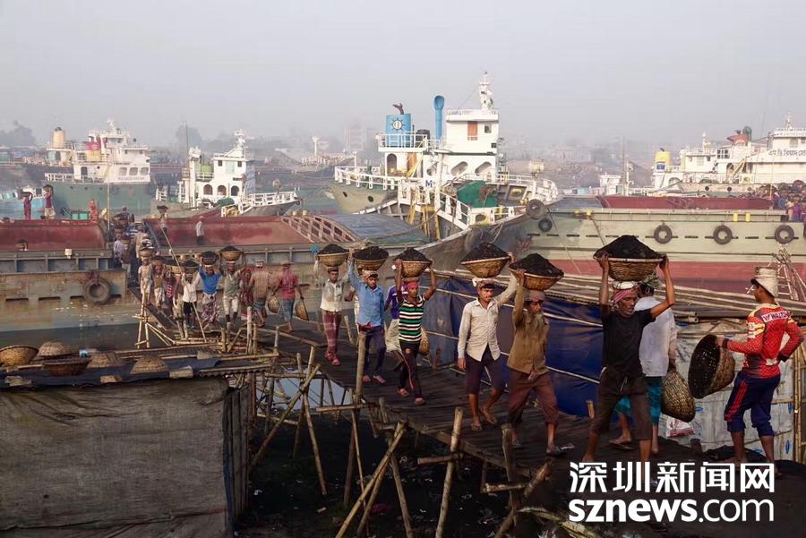 碼頭勞工裝卸作業(yè)的場面很震撼,令人慨嘆人生的艱辛。李仁奇攝