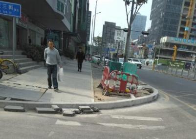 經(jīng)記者了解,從深圳實施道路設施品質(zhì)提升工程以來,有不少市民反映過施工中存在的一些問題。比如:去年11月16日,市民在論壇反映,田貝一路到三路,貝麗南路到翠竹路人行道全部敲掉。提升改造可以理解,全部路一次性毀掉行人該走哪里?如果很快完工就罷了,明顯還要一段時間才能完工。還有去年12月23日,市民反映,羅湖大面積改造人行道,馬路牙子換成又厚又高的大塊地磚,并且拓寬了人行道,擠占車行道,特別在狹窄道路或路口轉(zhuǎn)彎處,影響車輛轉(zhuǎn)彎,存在安全隱患。