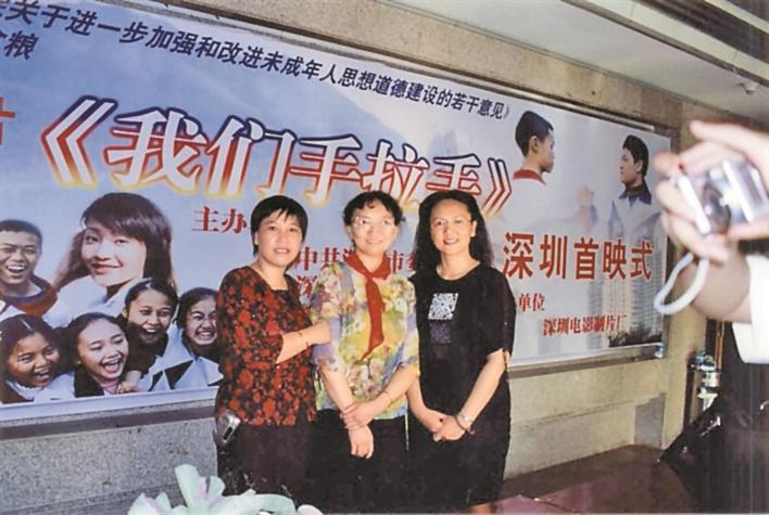 ▲2004年5月末,蘇曼華(中)和導演酈虹(右)在電影《我們手拉手》首映式上合影。