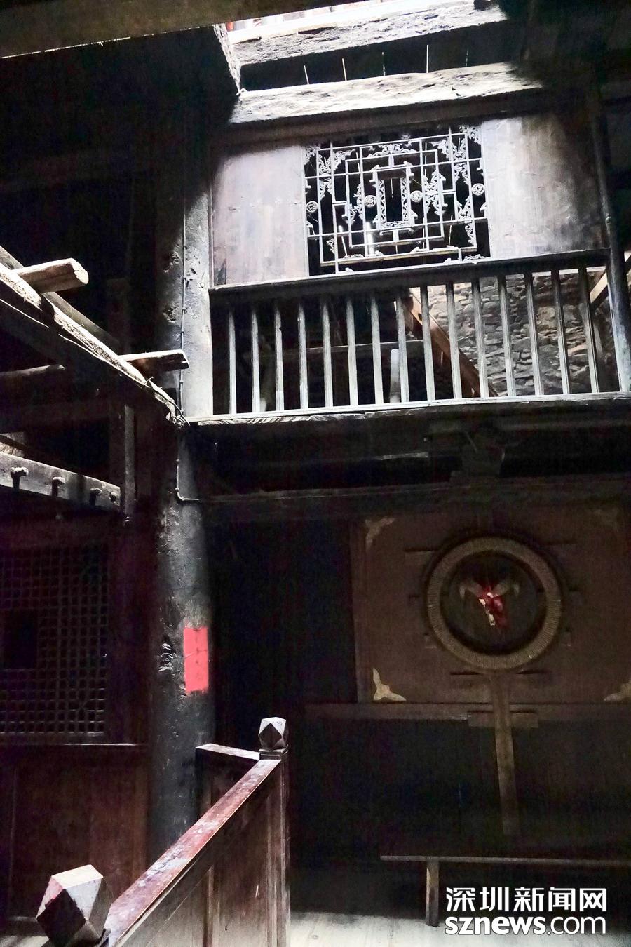 碉樓是整個寨子的標(biāo)志性建筑,目前僅存兩座,一座是陳仕明家的住宅,另一座雄踞在寨子對面的河岸上。碉樓分為9層,高30米左右,各層四方開有射擊窗口,頂樓的鐘孔是作為傳遞消息用的。李仁奇 攝