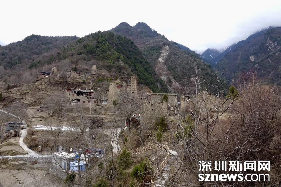 黑虎羌寨古稱“黑貓寨”,修建于唐代以后。是當?shù)匾恢甲逍〔柯錇榈钟练謹_建起來的“邛籠”(石砌碉樓)。古寨中現(xiàn)在留存高高矗立的十一座羌碉,保持著當年風煙滾滾的御敵氣勢。李仁奇 攝