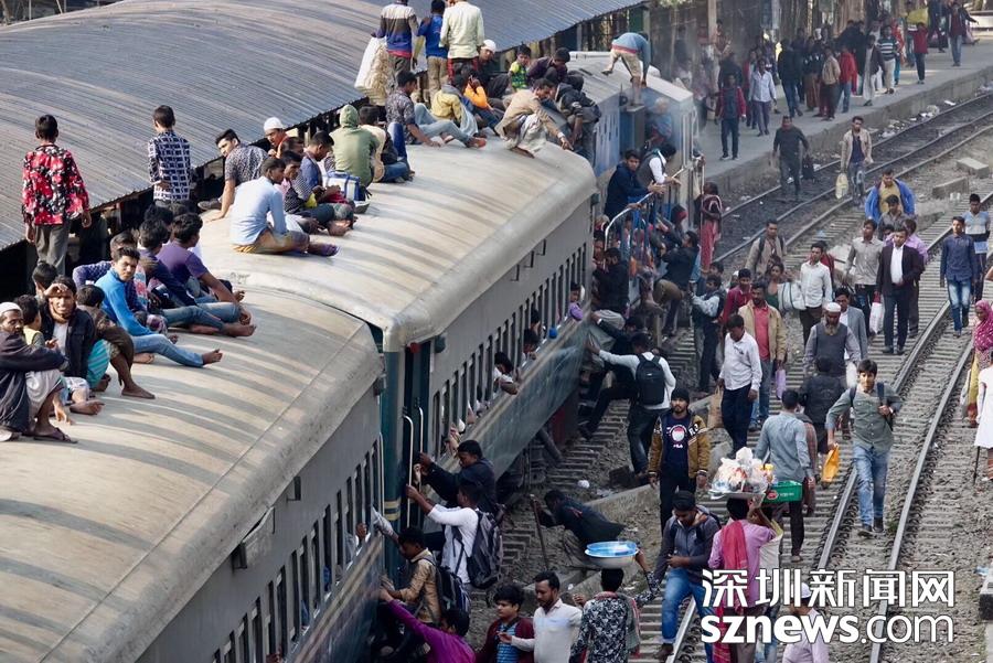 孟加拉國有大量貧困人口,很多乘坐中短途列車的人為節(jié)省車票費用,不惜冒險登上車頂。政府和鐵路部門原本禁止此類行為,但因運力不足、法不治眾、人力有限,后來便默許了。李仁奇攝
