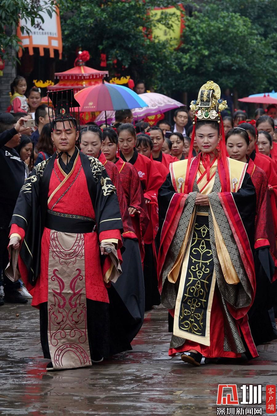 郪江古鎮(zhèn)古典風(fēng)格的迎賓儀式和民俗風(fēng)情展示。李仁奇攝