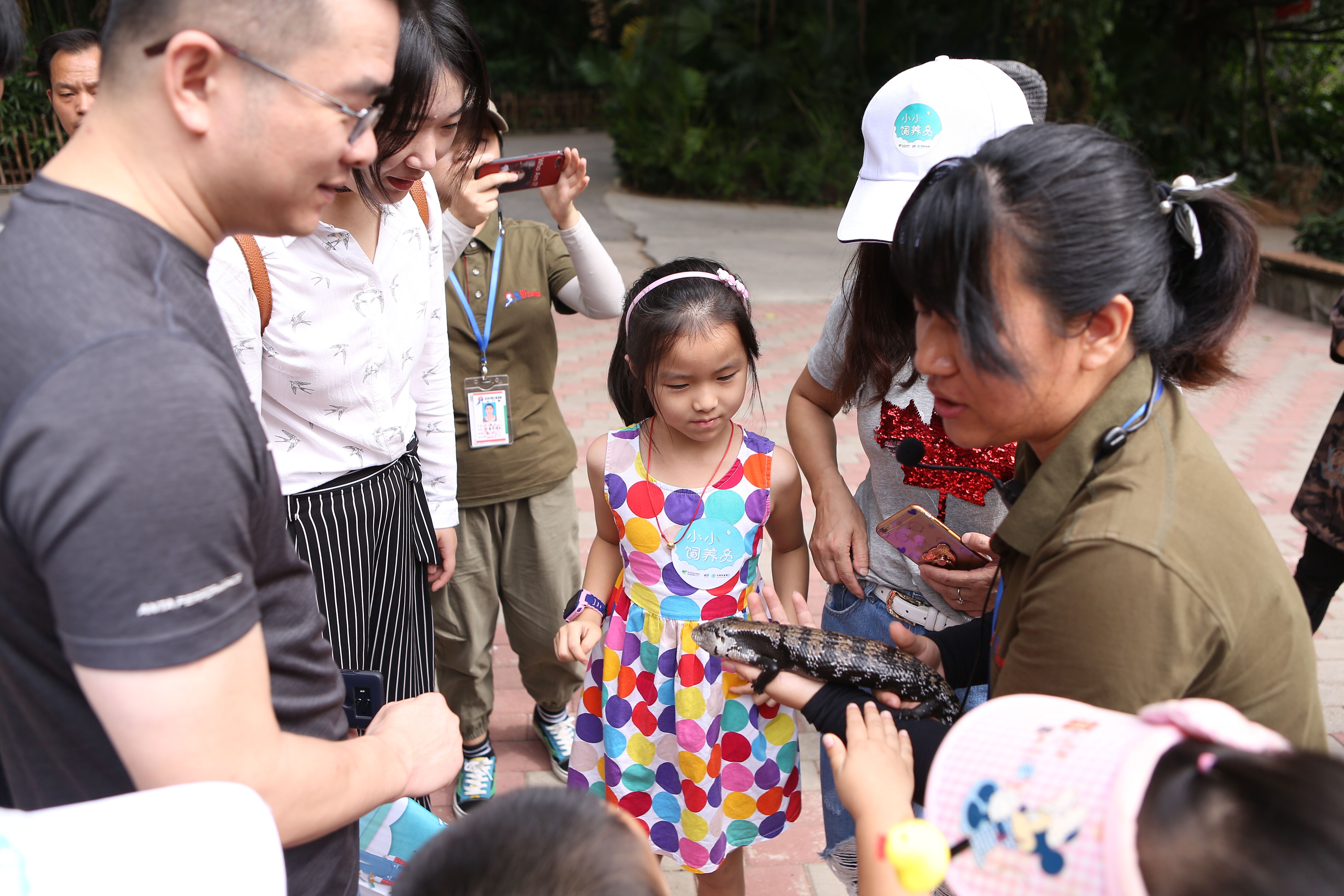 “鬃獅蜥和藍(lán)舌石龍子都是蜥蜴的一種。當(dāng)遭受威脅時,鬃獅蜥會張開嘴及將帶刺的咽喉膨起來像一頭生氣的獅子。藍(lán)舌石龍子的舌頭是藍(lán)色的,平時會不時向外一伸一伸。”小朋友們認(rèn)真地聽科普導(dǎo)游講解兩種蜥蜴的區(qū)別,膽大的孩子則抱起蜥蜴仔細(xì)觀察起來。