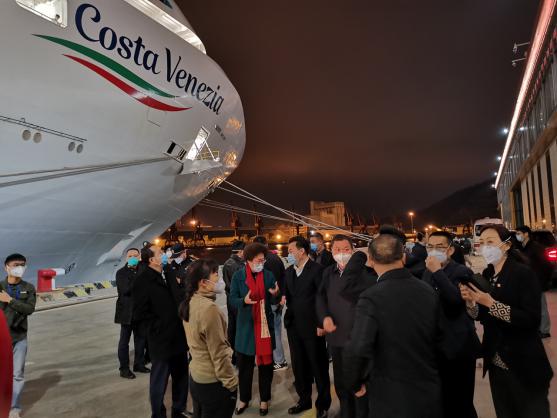 為確保1.26清晨電視電話會議順利召開,郵輪母港工程師連夜趕回公司調(diào)試設(shè)備;港口值班經(jīng)理尹犇接到海關(guān)急需手持式體溫測量儀的消息后,凌晨2點騎自行車前往公司將三臺手持式體溫測量儀交接到海關(guān)人員手中,為海關(guān)排查歌詩達威尼斯號郵輪旅客體溫做好保障工作,深夜疫情下的街道顯得格外冷情。
