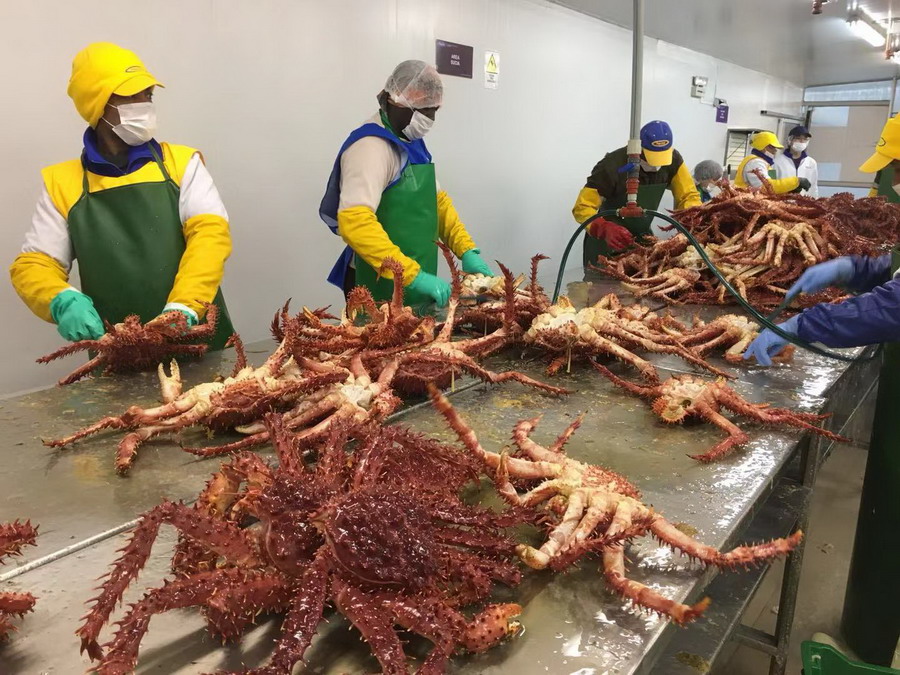 智利蜘蛛蟹加工基地。李仁奇攝