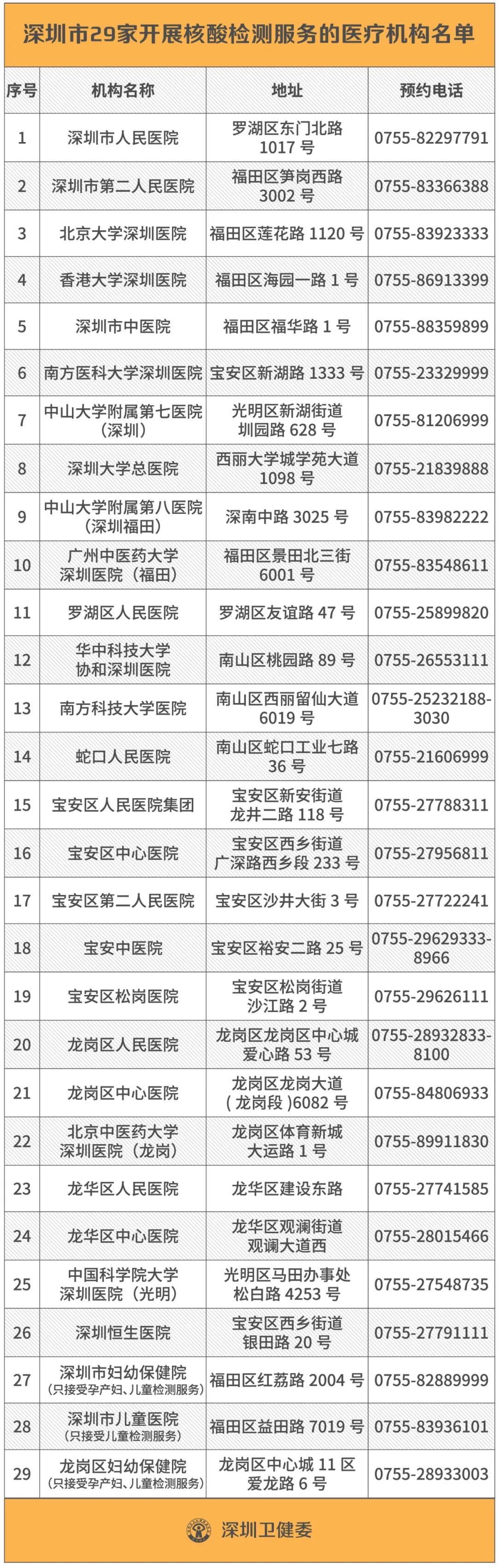 跨境學(xué)生可聯(lián)系全市提供核酸檢測的29家醫(yī)療機(jī)構(gòu)(詳見附件,含醫(yī)院名稱、地址和聯(lián)系電話)中的任意一家進(jìn)行檢測,部分醫(yī)院有預(yù)約要求,部分醫(yī)院對檢測服務(wù)時間有限定,因此首次前往檢測前,請先拔打聯(lián)系電話了解醫(yī)院是否需要預(yù)約和服務(wù)時間安排。