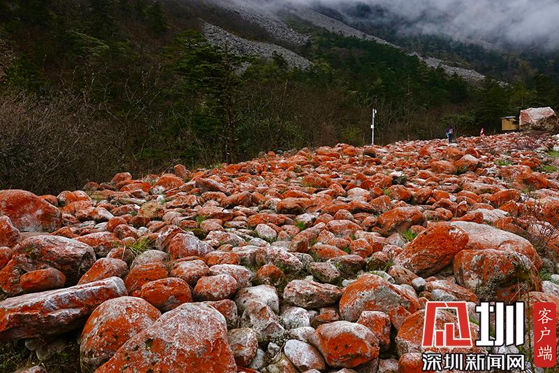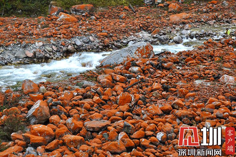 紅石對(duì)生長(zhǎng)環(huán)境的要求極為苛刻,空氣潔凈度、濕度、水的清潔度都會(huì)影響它們的生長(zhǎng)。雅家梗一代低碳富氧的空氣、冰山融雪的溪流、森林茂密的植被,為紅石的生長(zhǎng)繁衍提供了最理想的環(huán)境。在這里,紅石密布于近百米寬的河谷里,不同的季節(jié),不同的天氣狀況下,幻化出不同的色彩,呈現(xiàn)朝紅夕褚的奇異景觀。