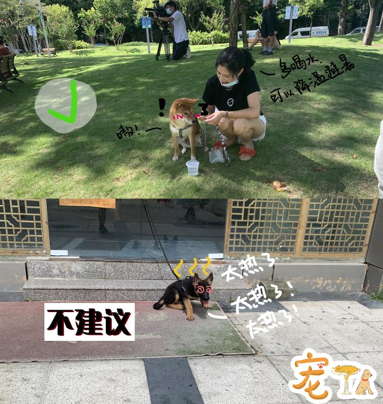 正由于寵物們汗腺比人類少得多,很多時候人類覺得還行,但他們其實已經(jīng)熱得不得了了。所以每天散步時應(yīng)該避開比較熱、陽光比較充足的時間段。