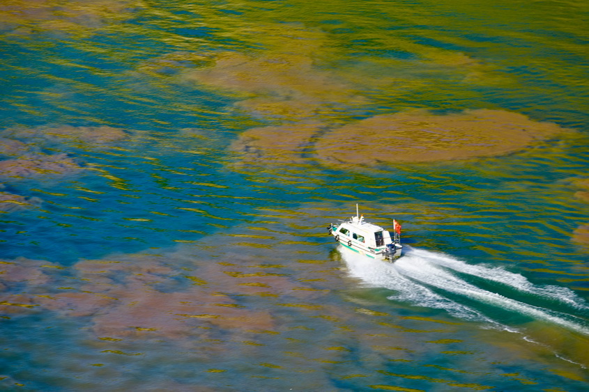 洮河黃河匯流處清濁分明的水面和電站排洪的壯觀景象具有獨特的觀賞價值。李仁奇攝