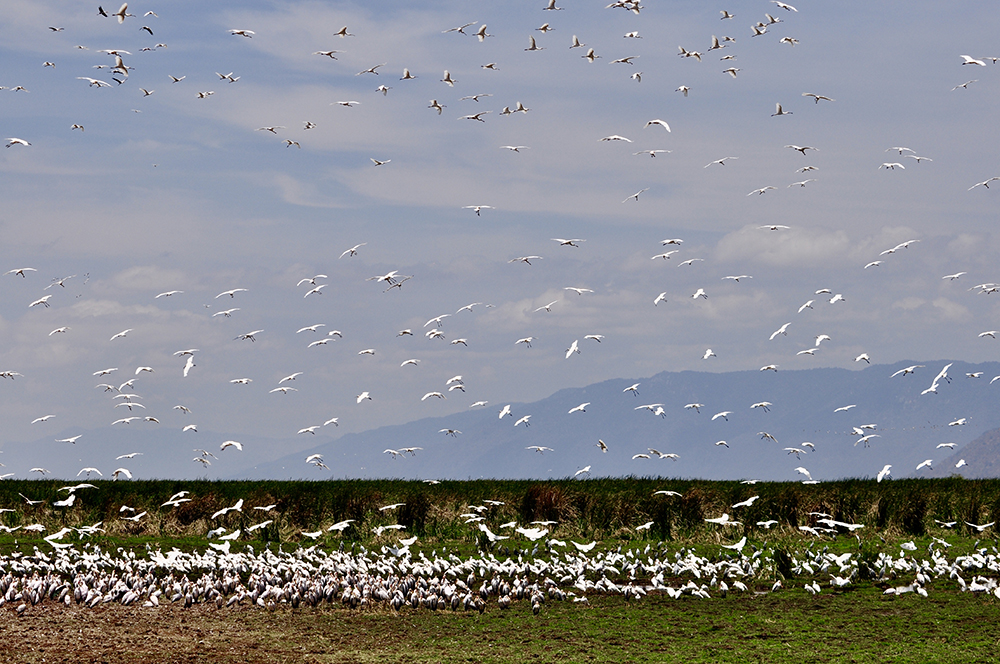 坦桑尼亞北部內(nèi)陸湖。在阿魯沙西南96公里。由斷層陷落形成,南北長48公里,東西寬16公里,面積325平方公里。李仁奇 攝