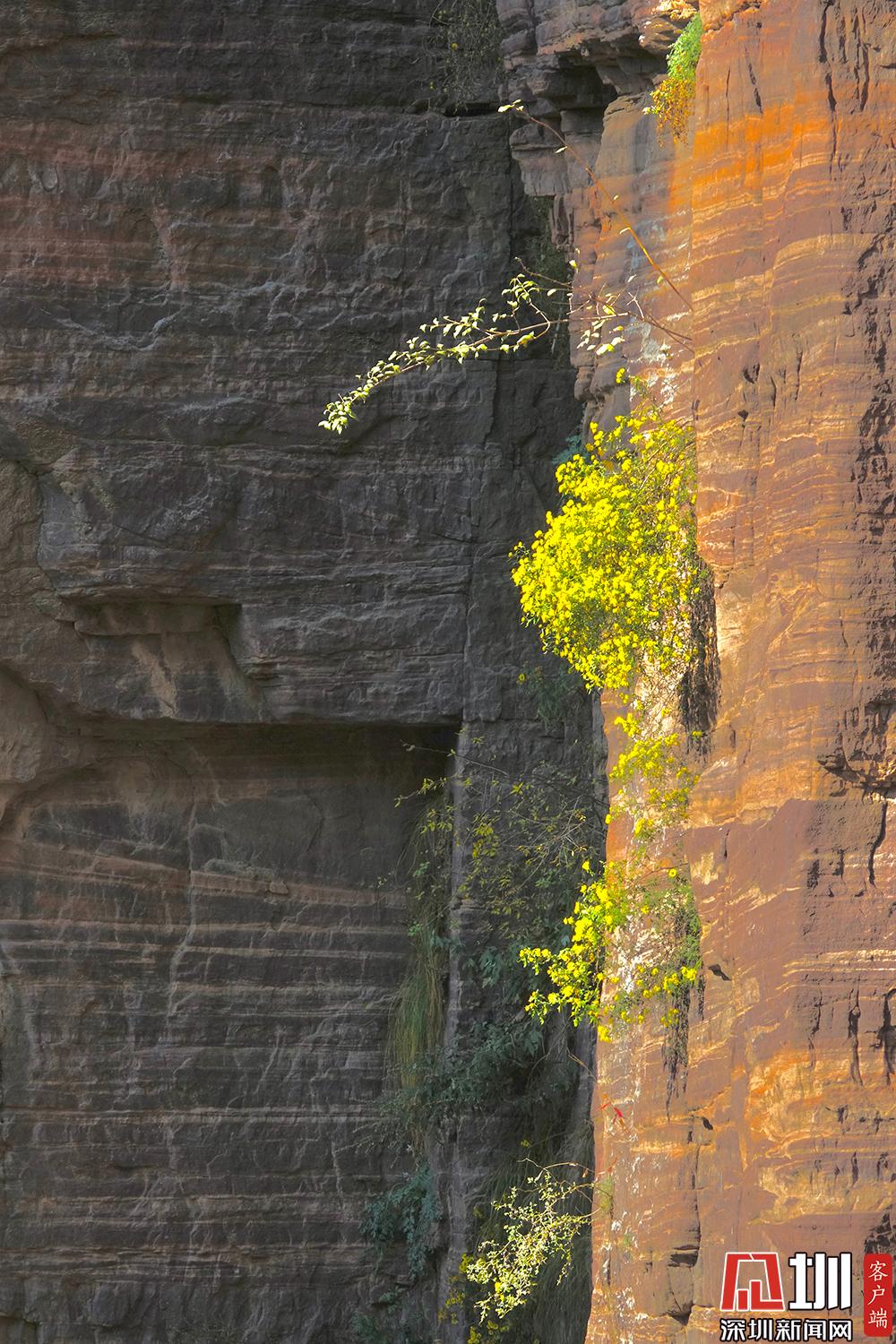嫩綠的樹(shù)枝從絕壁之中生長(zhǎng)開(kāi)來(lái)。李仁奇攝