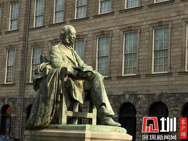 這里出生并成就了許多著名的文學(xué)家,如葉芝、王爾德、蕭伯納等。圖為著名作家、詩(shī)人王爾德塑像。李仁奇 攝