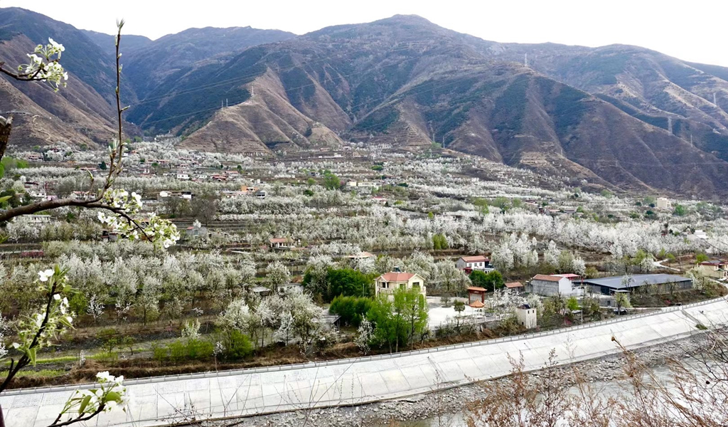 每年三到四月,金川縣的上百萬株梨樹在春日照耀下盛開白花,萬畝梨海、百里吐蕊。李仁奇 攝