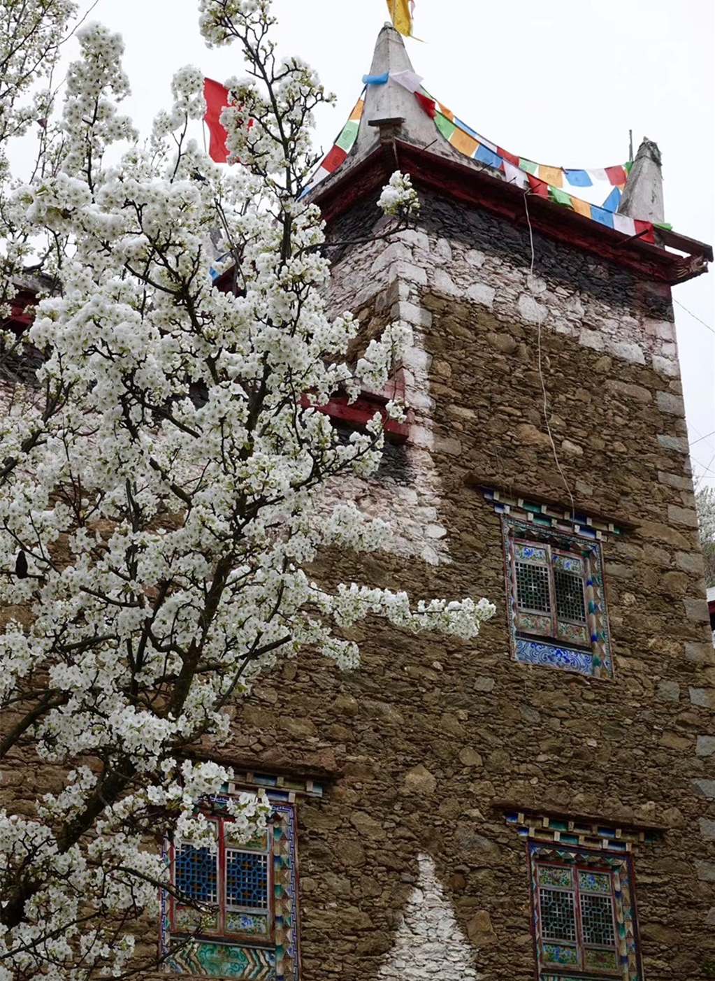 當(dāng)群山還披著皚皚白雪,春寒尚未消盡,甲居藏寨的梨花卻已悄然開放。李仁奇 攝
