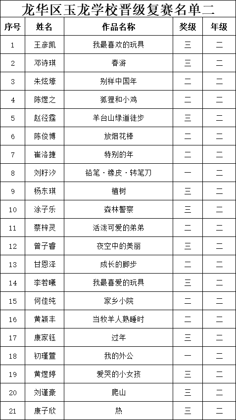 自2021年1月,活動(dòng)征稿啟動(dòng)以來(lái),獲得了深圳市廣大中小學(xué)生、教師、文學(xué)愛(ài)好者的熱烈響應(yīng)積極參與,吸引了深圳百余所學(xué)校的上萬(wàn)人關(guān)注報(bào)名?,F(xiàn)公布龍華區(qū)玉龍學(xué)校專場(chǎng)第二批晉級(jí)復(fù)賽名單如下: