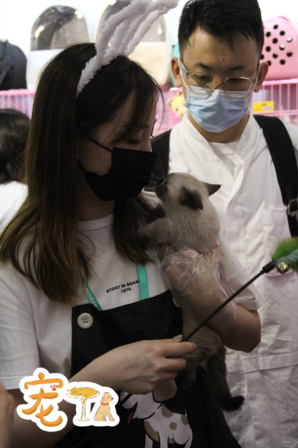 為了減少傳染,一些貓咪活體的展商要求觀眾戴著一次性手套觸摸貓咪。