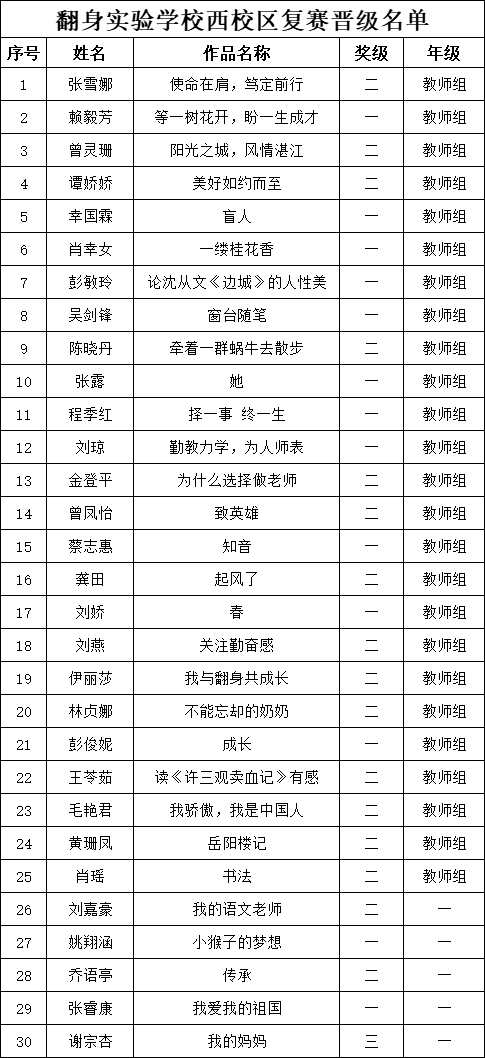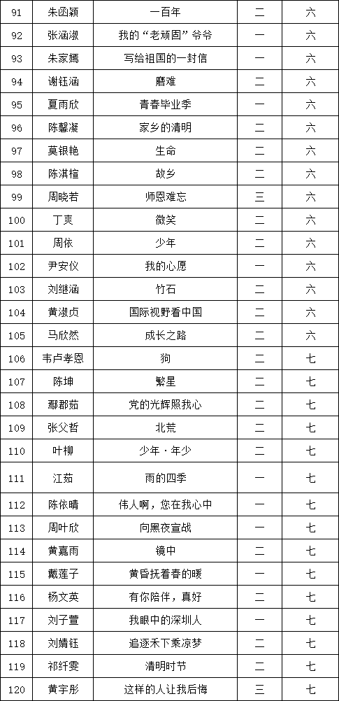 自2021年1月,活動征稿啟動以來,獲得了深圳市廣大中小學(xué)生、教師、文學(xué)愛好者的熱烈響應(yīng)積極參與,吸引了深圳百余所學(xué)校的上萬人關(guān)注報(bào)名。現(xiàn)公布翻身實(shí)驗(yàn)學(xué)校西校區(qū)晉級復(fù)賽名單如下: