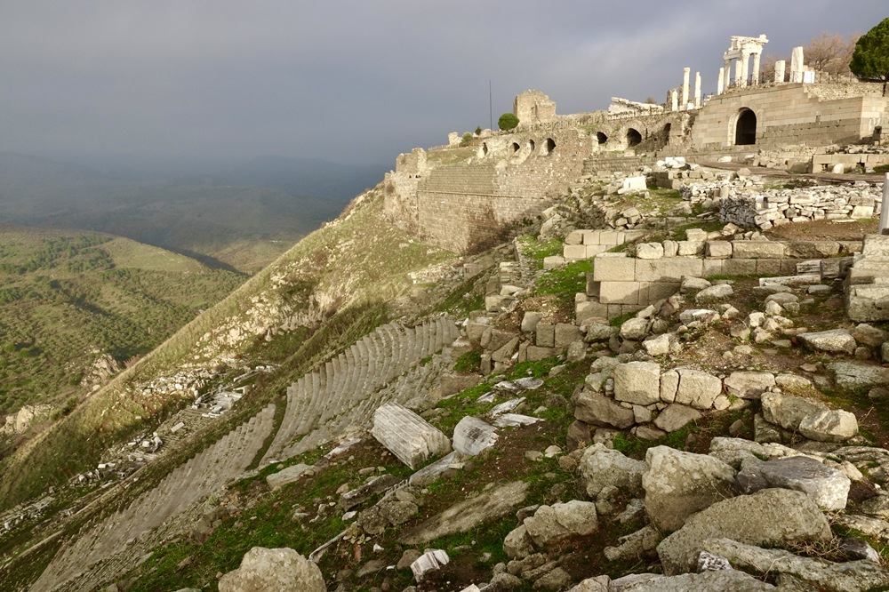羅馬帝國(guó)時(shí),城市遷到山下的平原。山頂和山坡高處的古跡包括一座劇場(chǎng)、雅典娜神廟以及宙斯大祭壇。李仁奇 攝