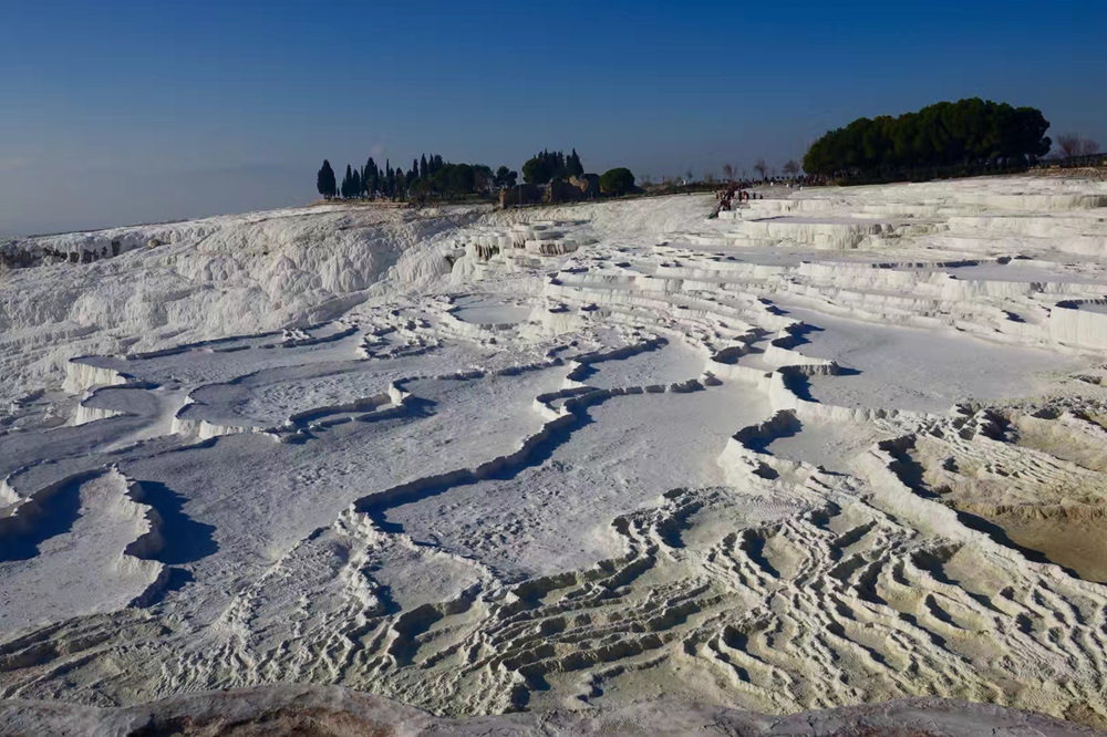 棉花堡是土耳其最著名的旅游景區(qū)之一,位于土耳其西南部紡織工業(yè)城市代尼茲利附近,與緊鄰它的希拉波利斯古城一起被聯(lián)合國(guó)教科文組織列為世界自然文化雙遺產(chǎn)。李仁奇 攝