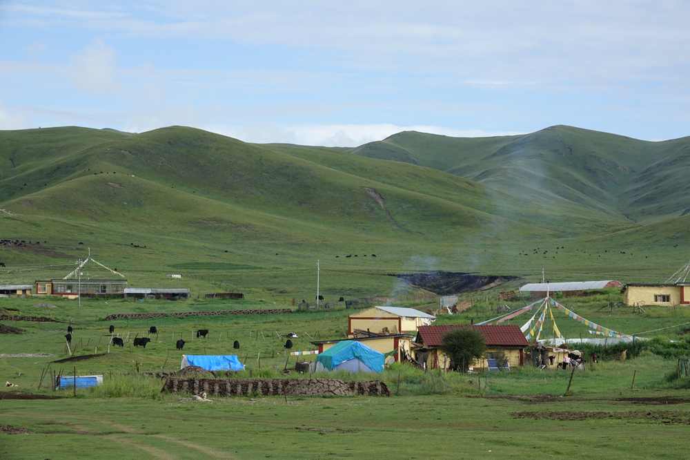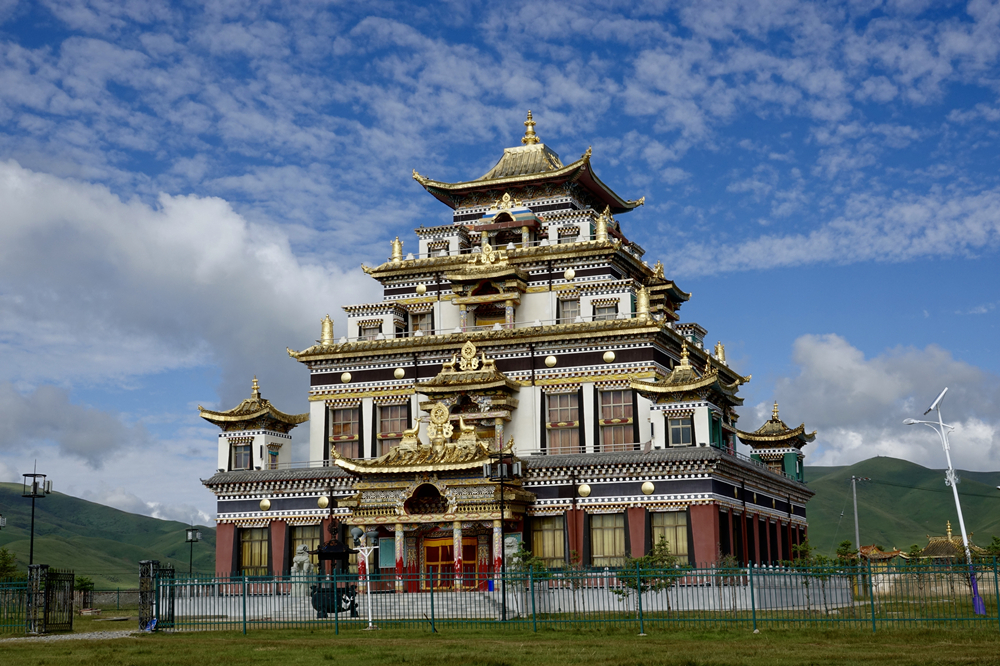 寧瑪寺矗立在遼闊的扎西貢色草灘之上,四周被河流環(huán)繞。李仁奇 攝