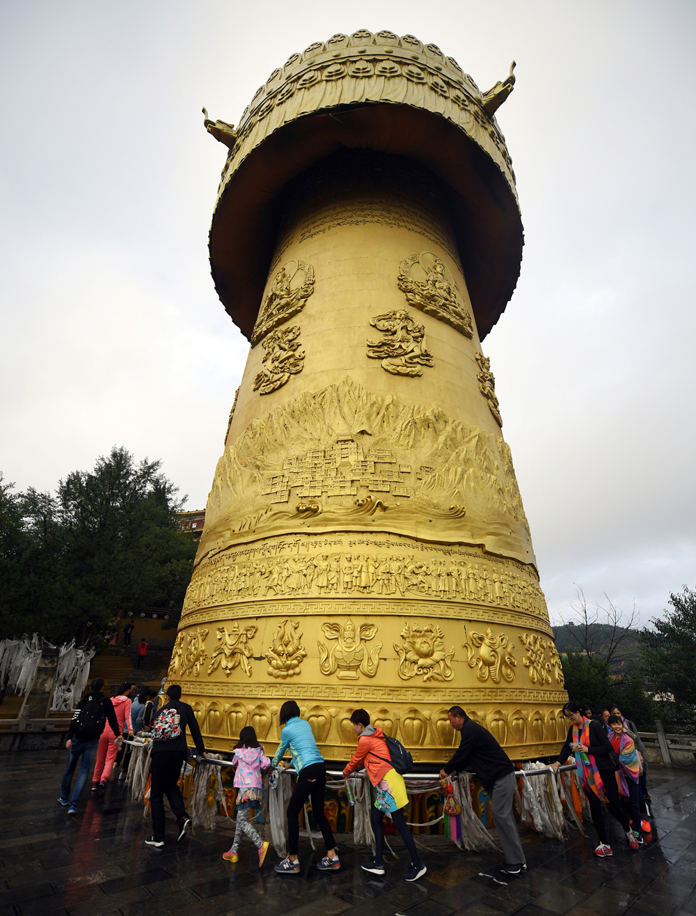 隨著我國藏傳佛教信徒聚居區(qū)經(jīng)濟社會的發(fā)展,從2009年起,在云南、青海、四川、甘肅四省先后建起了5座領(lǐng)先一時的“世界最大轉(zhuǎn)經(jīng)筒”。李仁奇 攝