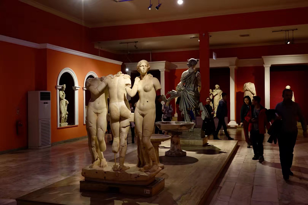 大量公元2—3世紀(jì)的人體雕塑令人目不暇接,這個(gè)時(shí)期也是該地區(qū)歷史發(fā)展中最為繁盛的階段。館內(nèi)陳列著眾多古希臘古羅馬眾神的雕像,號(hào)稱“萬(wàn)神殿”。這些雕像是從公元8世紀(jì)的古墓里面發(fā)掘出來的,包括眾神之神宙斯、天后赫拉、智慧女神雅典娜、愛情與美麗女神阿芙羅狄忒、太陽(yáng)神阿波羅、大力神赫拉克勒斯等。李仁奇 攝