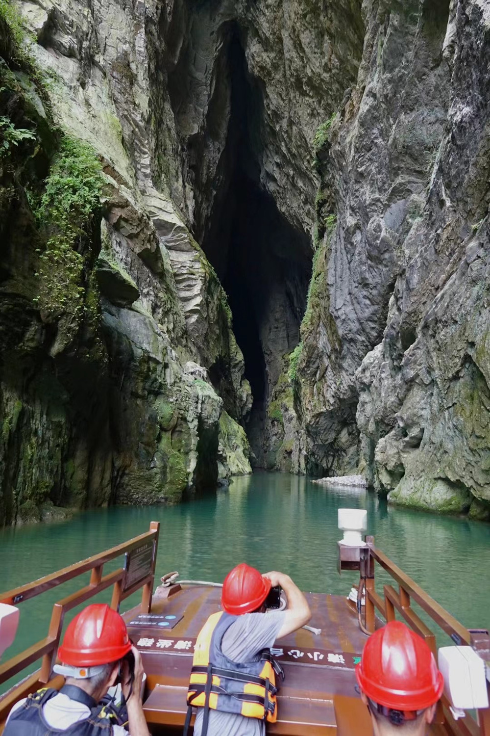“暗河”指的是這條河流穿行溶洞的部分。里面漆黑一片,伸手不見(jiàn)五指,但中段有“蒼天有眼”(實(shí)為天生橋)奇觀,末端有形似“天下第一刀”的天空,令人稱奇。李仁奇 攝