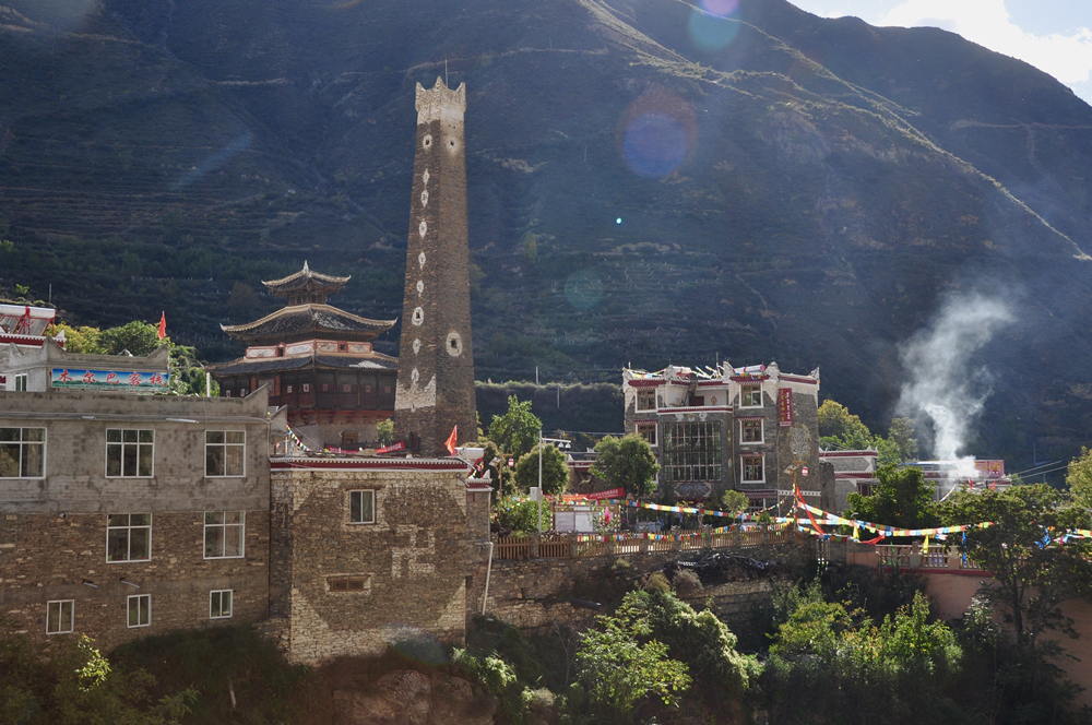 在它的后面三個(gè)碉樓特別吸引眼球。左邊第一座是五角碉,第二座是八角碉,第三座是常見的四角碉。李仁奇 攝