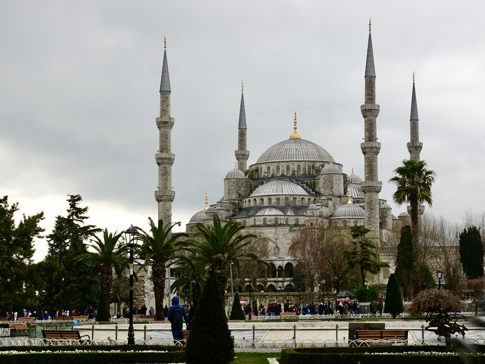 公元1453年,奧斯曼土耳其蘇丹下令將將君士坦丁堡改名為伊斯坦布爾,將索菲亞大教堂改成阿雅索菲亞清真寺,并將教堂內(nèi)所有拜占庭的壁畫全部用灰漿遮蓋住,所有基督教雕像也被搬出,還在周圍修建了4個(gè)高大的宣禮塔。李仁奇 攝