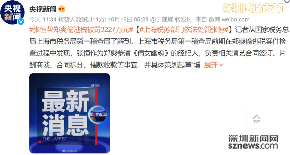 (相關(guān)報道:鄭爽逃稅張恒被罰3227萬明星經(jīng)紀(jì)人為啥也被盯上了)