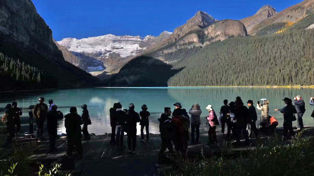 露易斯湖源自維多利亞冰川,湖水碧綠清澈,遠(yuǎn)望就像鑲嵌在落基山脈中的一顆翡翠。李仁奇 攝