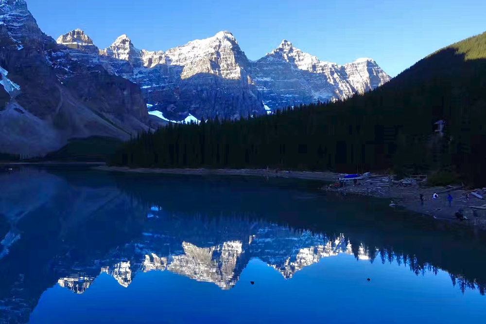 湖水晶瑩剔透,在鋸齒狀的山谷的擁環(huán)下,就像一塊寶玉。這塊“國(guó)寶”被印在加拿大20元的紙幣上。李仁奇 攝