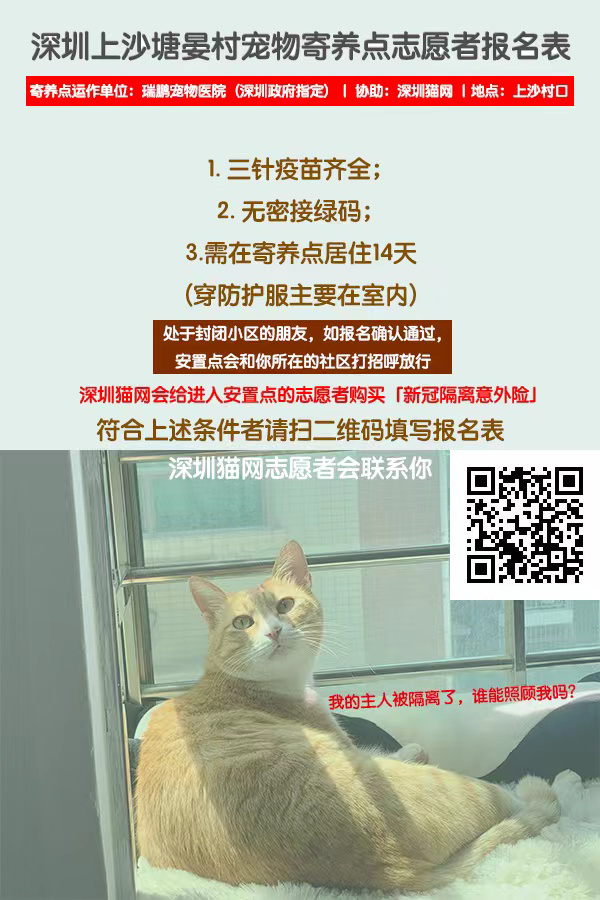 3月17日,深圳福田區(qū)正式官宣,根據(jù)疫情防控需要,對上沙塘晏村部分區(qū)域居民以家庭為單位異地集中健康監(jiān)測14天。同時,也對居民寵物也有了妥善的安排,小型寵物可攜帶陪同,對于不能攜帶的寵物,啟用“愛心驛站”進行免費托管。