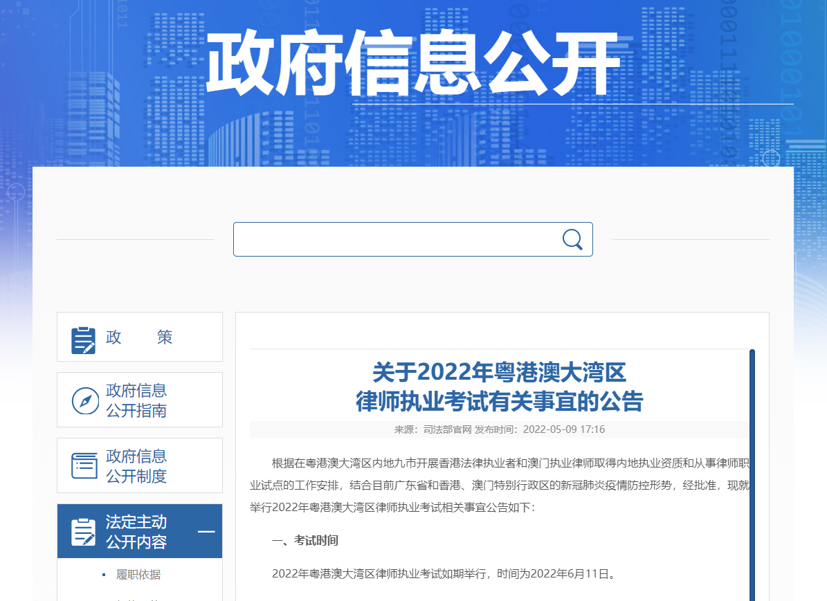 2022年粵港澳大灣區(qū)律師執(zhí)業(yè)考試如期舉行,時間為2022年6月11日。