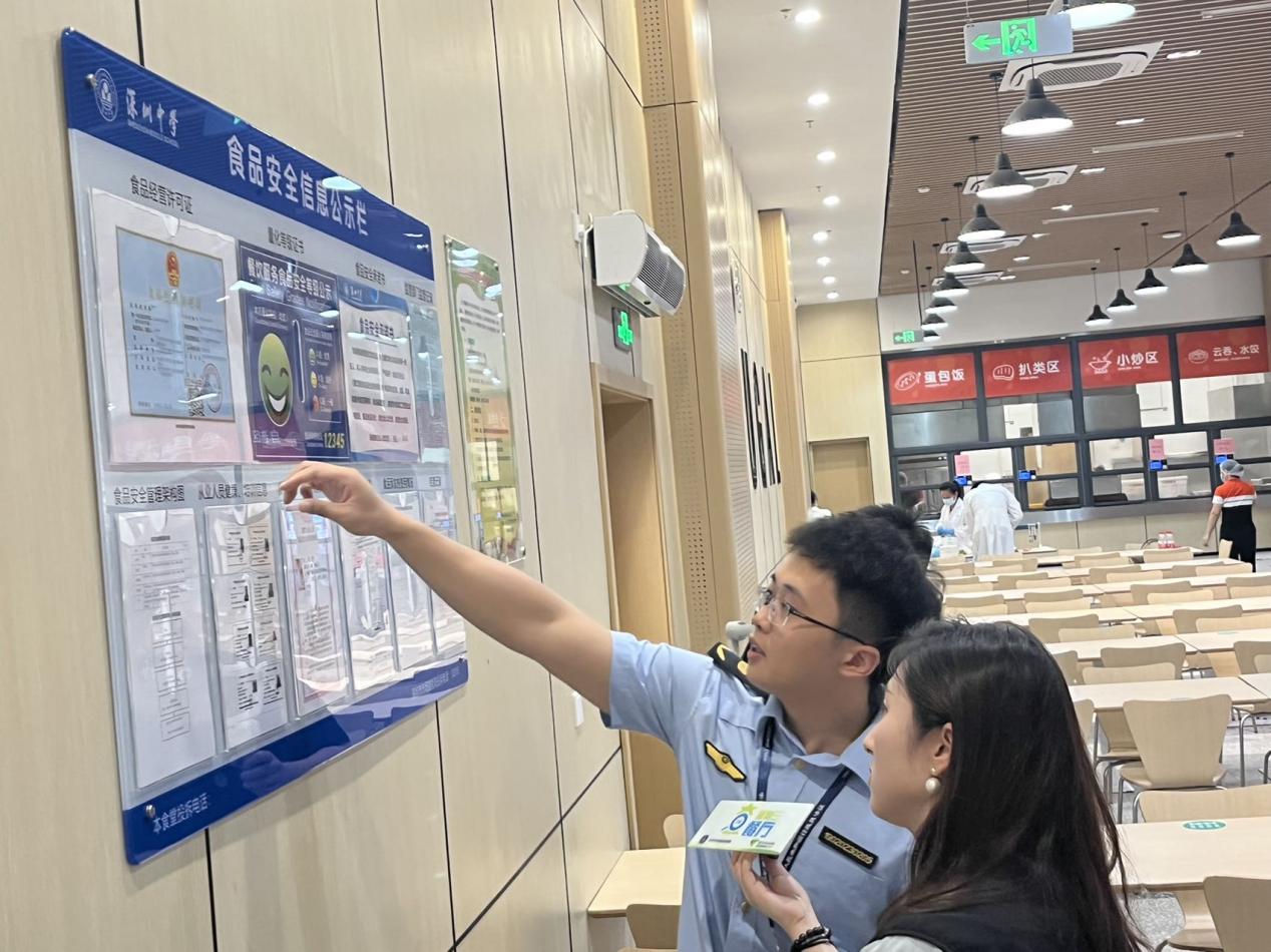 在食堂用餐區(qū),執(zhí)法人員依次查看食品安全公示欄、明廚亮灶系統(tǒng)、用餐區(qū)域消毒記錄等信息。檢查過程中發(fā)現(xiàn)部分從業(yè)人員健康證即將到期,深圳市市場監(jiān)督管理局羅湖監(jiān)管局執(zhí)法人員羅偉仁提醒,為保護從業(yè)人員自身及服務對象的健康,應盡快更新辦理從業(yè)人員健康證。