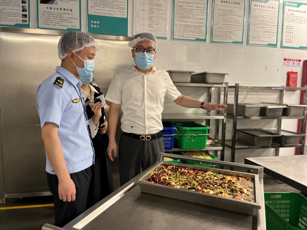 執(zhí)法人員現(xiàn)場對學校后廚進行詳細檢查,分別從采購索證索票、進貨查驗、制作加工、備餐配送、場所和設施清潔維護、餐飲具清洗消毒、從業(yè)人員健康管理,制止餐飲浪費,食品安全總監(jiān)配置履職情況,以及落實主體責任的“日管控周排查月調(diào)度”制度等方面進行詳細檢查。經(jīng)檢查,整體情況良好,但存在部分細節(jié)問題,如水產(chǎn)品刀具分類可更細致、操作臺積水需清理、面點間的食材存放需避免陽光直射等,針對檢查過程中發(fā)現(xiàn)的問題,執(zhí)法人員現(xiàn)場責令學校限期整改到位。同時,快檢工作人員對餐廳使用的食材進行了抽檢,結(jié)果均為陰性。