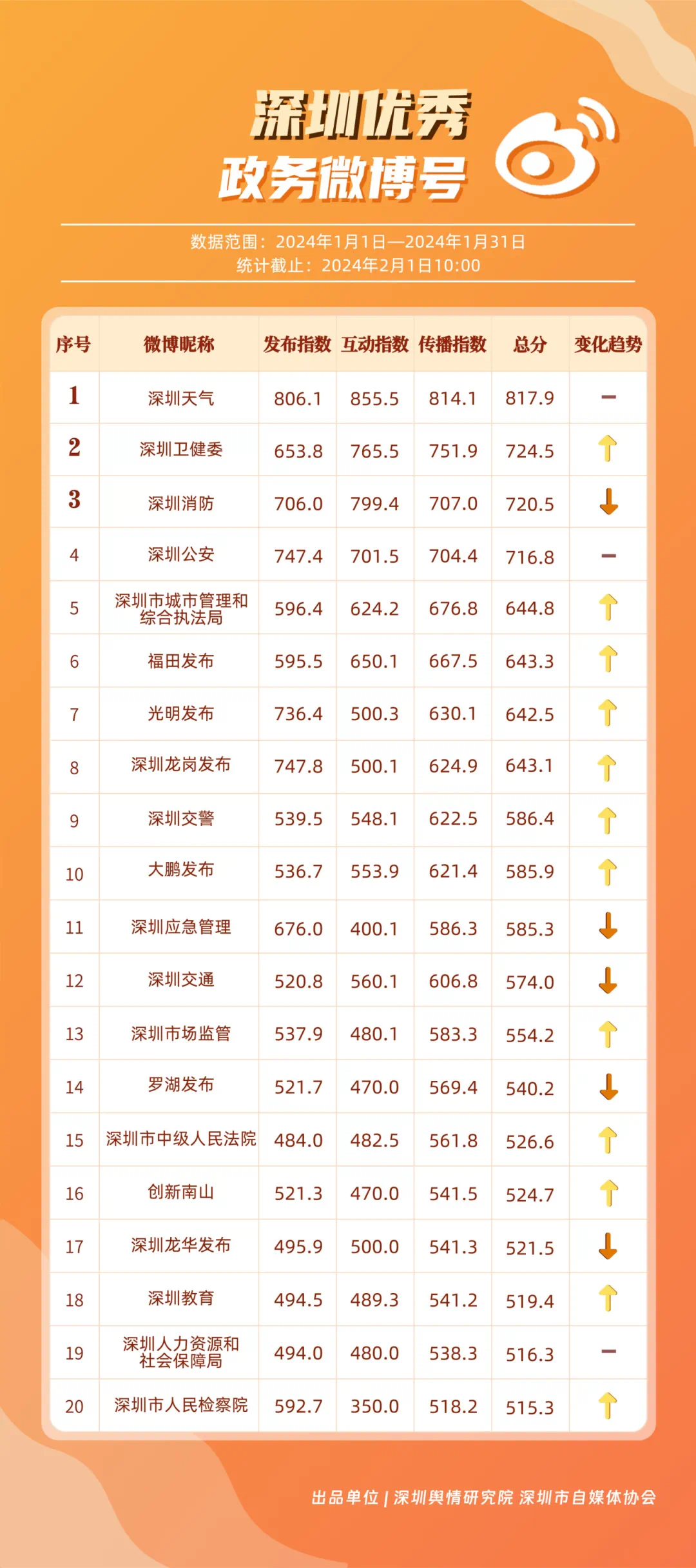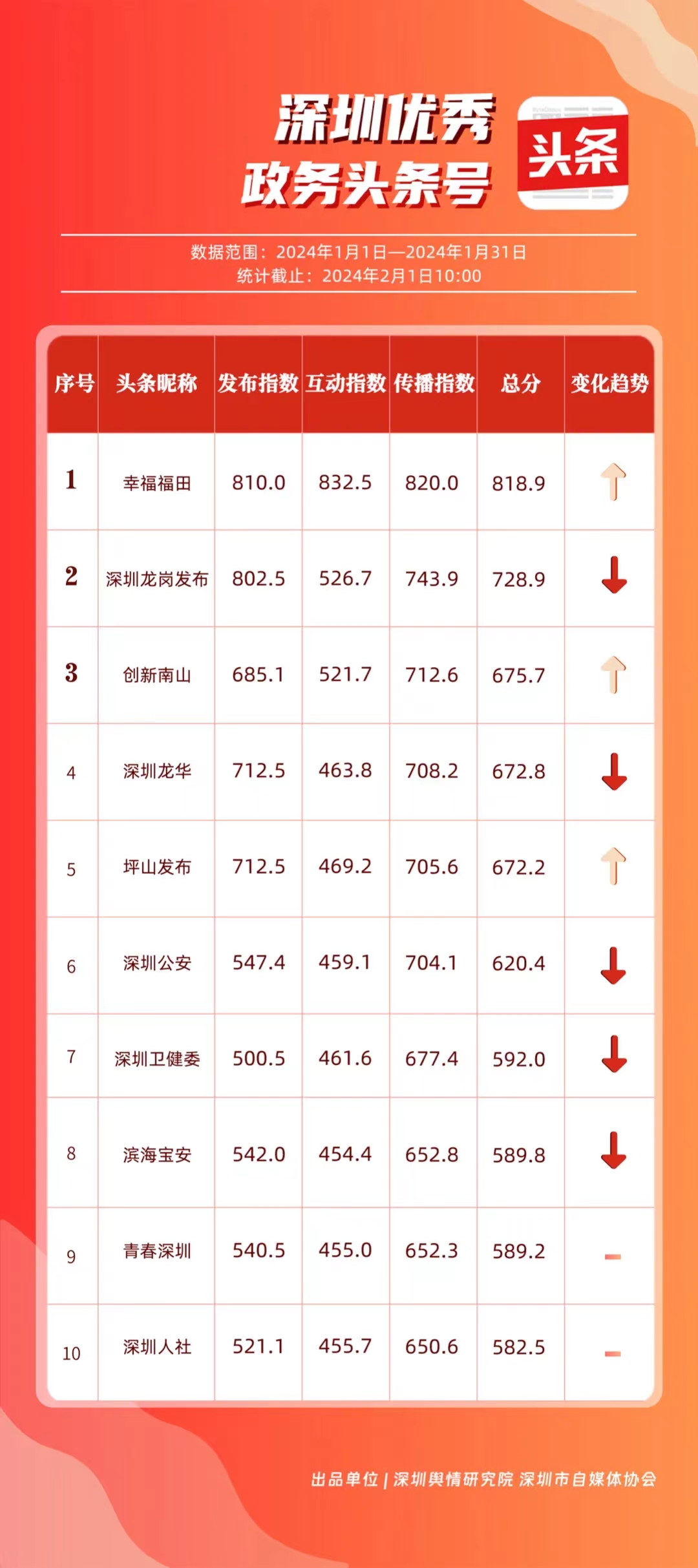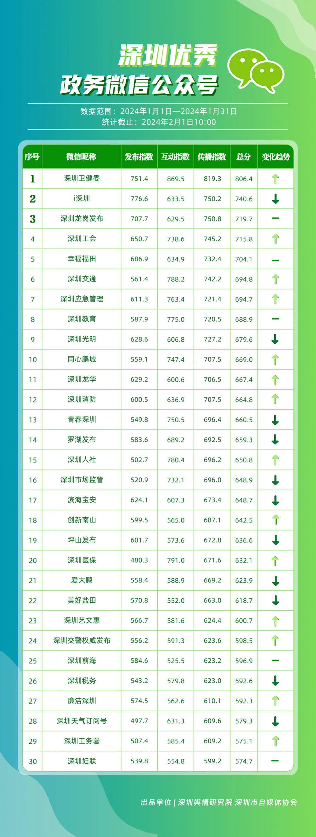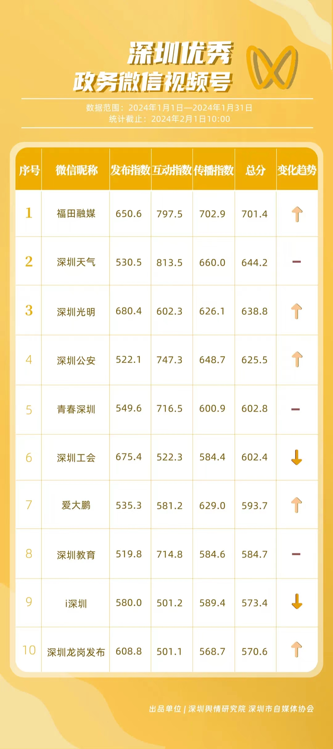 深圳新聞網(wǎng)2月9日訊(記者 陳曉君 實(shí)習(xí)生 張馳)2月8日,深圳輿情研究院、深圳市自媒體協(xié)會(huì)聯(lián)合推出《深圳優(yōu)秀政務(wù)新媒體矩陣》(2024年1月期),市衛(wèi)生健康委、市氣象局、福田區(qū)、光明區(qū)、龍崗區(qū)、龍華區(qū)、市公安局、市應(yīng)急管理局、市交通警察局、羅湖區(qū)的新媒體矩陣獲評(píng)“深圳優(yōu)秀政務(wù)新媒體矩陣”。這些矩陣在內(nèi)容發(fā)布、受眾互動(dòng)和信息傳播方面取得了較好成績(jī),并在深圳政務(wù)新媒體規(guī)范有序發(fā)展進(jìn)程中發(fā)揮著積極作用。