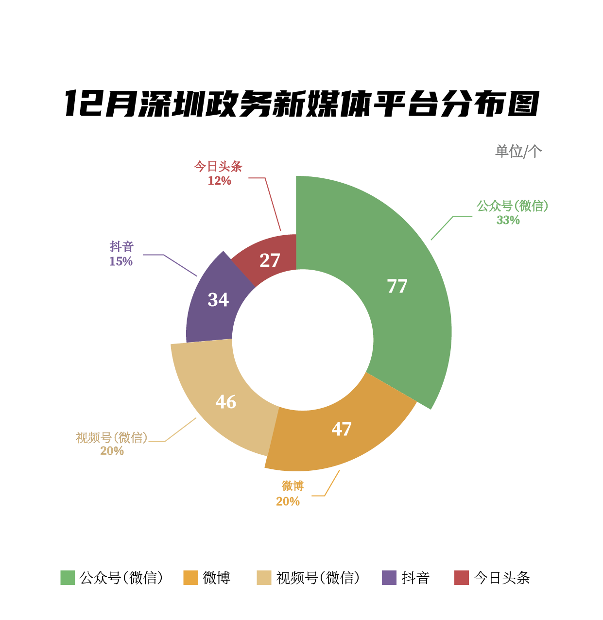 12月,市衛(wèi)生健康委、龍崗區(qū)、福田區(qū)、南山區(qū)、市氣象局、深汕特別合作區(qū)、光明區(qū)、市消防救援支隊、龍華區(qū)、市應急管理局榮登“深圳優(yōu)秀政務新媒體矩陣”榜單。12月,市衛(wèi)生健康委持續(xù)發(fā)力抖音等平臺,鞏固榜首地位,展現(xiàn)了政務宣傳賬號的蓬勃活力與創(chuàng)新能力,贏得了廣泛關注。龍崗區(qū)新媒體矩陣則在微信公眾號、抖音兩大平臺上取得了亮眼成績。福田區(qū)新媒體矩陣通過精心策劃與運營微信公眾號平臺,成功吸引了大量忠實讀者,最終在《深圳優(yōu)秀政務新媒體矩陣》榜單中榮獲第三名。同時,南山區(qū)、市氣象局、深汕特別合作區(qū)等新媒體矩陣在也在各自領域內(nèi)大放異彩,在榜單中名列前茅。