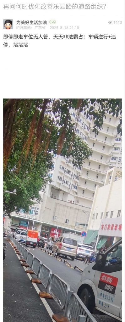 24. 帖文《再問何時優(yōu)化改善樂園路的道路組織?》