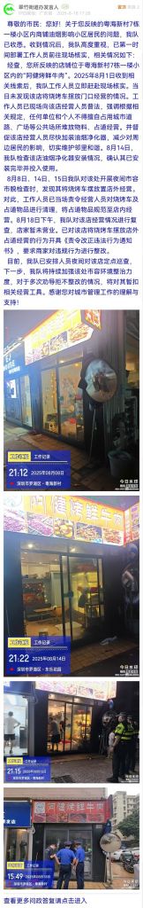 目前,我隊已安排人員夜間對該店定點巡查,下一步,我隊將持續(xù)加強該處市容環(huán)境整治力度,對于多次勸導(dǎo)拒不整改的情況,將對其暫扣相關(guān)經(jīng)營工具。感謝您對城市管理工作的理解與支持!