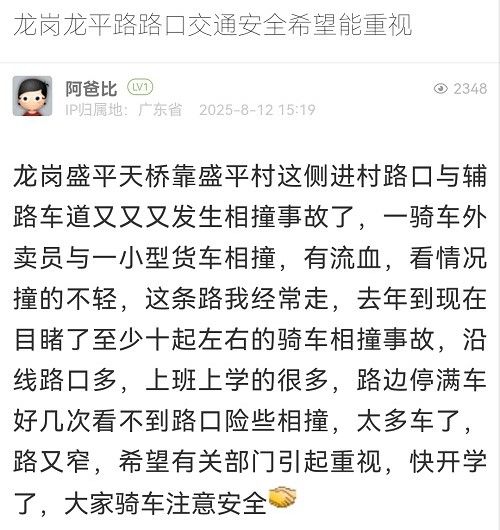 5. 帖文《龍崗龍平路路口交通安全希望能重視》