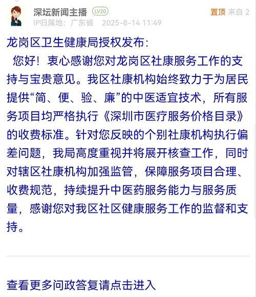 您好!衷心感謝您對龍崗區(qū)社康服務(wù)工作的支持與寶貴意見。我區(qū)社康機構(gòu)始終致力于為居民提供“簡、便、驗、廉”的中醫(yī)適宜技術(shù),所有服務(wù)項目均嚴格執(zhí)行《深圳市醫(yī)療服務(wù)價格目錄》的收費標準。針對您反映的個別社康機構(gòu)執(zhí)行偏差問題,我局高度重視并將展開核查工作,同時對轄區(qū)社康機構(gòu)加強監(jiān)管,保障服務(wù)項目合理、收費規(guī)范,持續(xù)提升中醫(yī)藥服務(wù)能力與服務(wù)質(zhì)量,感謝您對我區(qū)社區(qū)健康服務(wù)工作的監(jiān)督和支持。