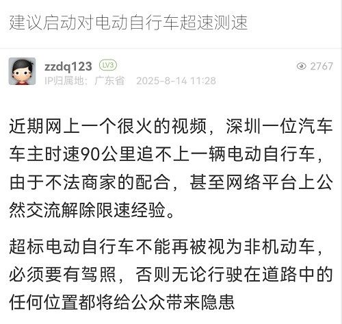 12. 帖文《建議啟動對電動自行車超速測速》