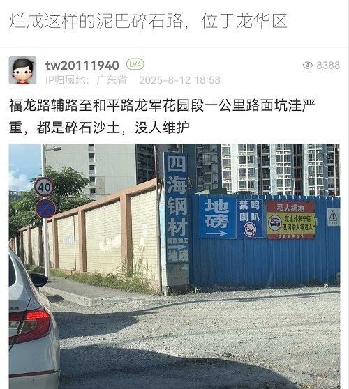 7. 帖文《爛成這樣的泥巴碎石路,位于龍華區(qū)》