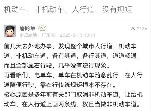 25. 帖文《擺攤擺到馬路中間,電單車亂竄,這里的交通混亂》